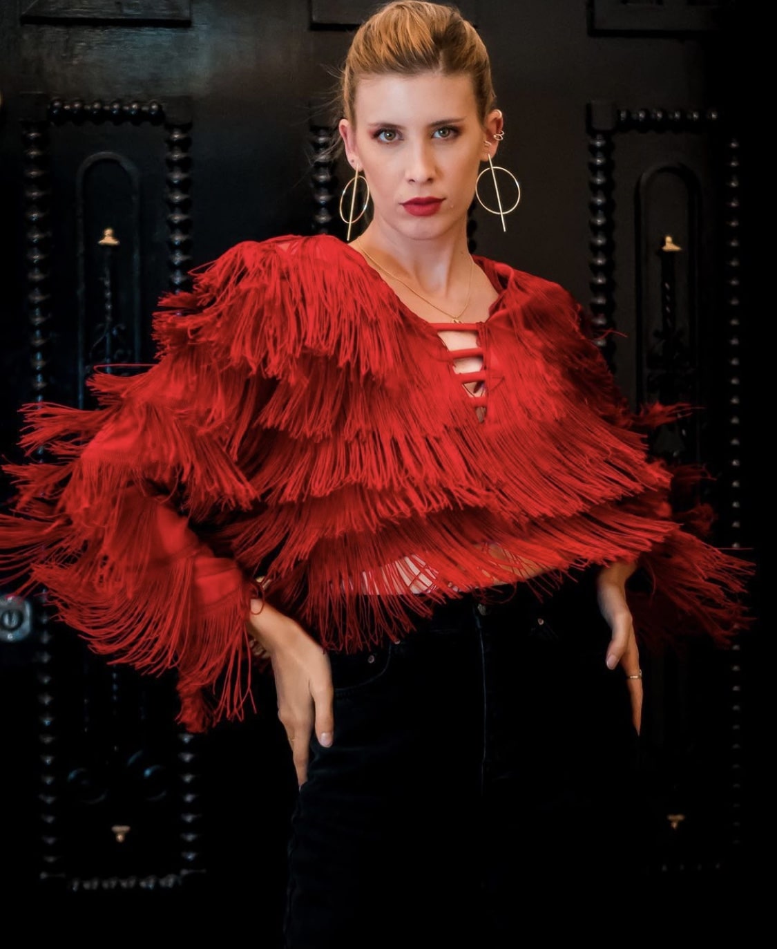 Agus Pedano felicita la Navidad llevando nuestro top de flecos rojos Paniculata